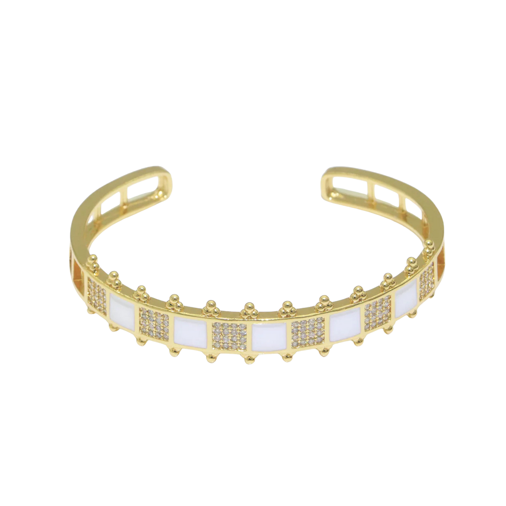 Micro Pave Enamel Gold and White Checker Bangle ✦ BR-21WA171
