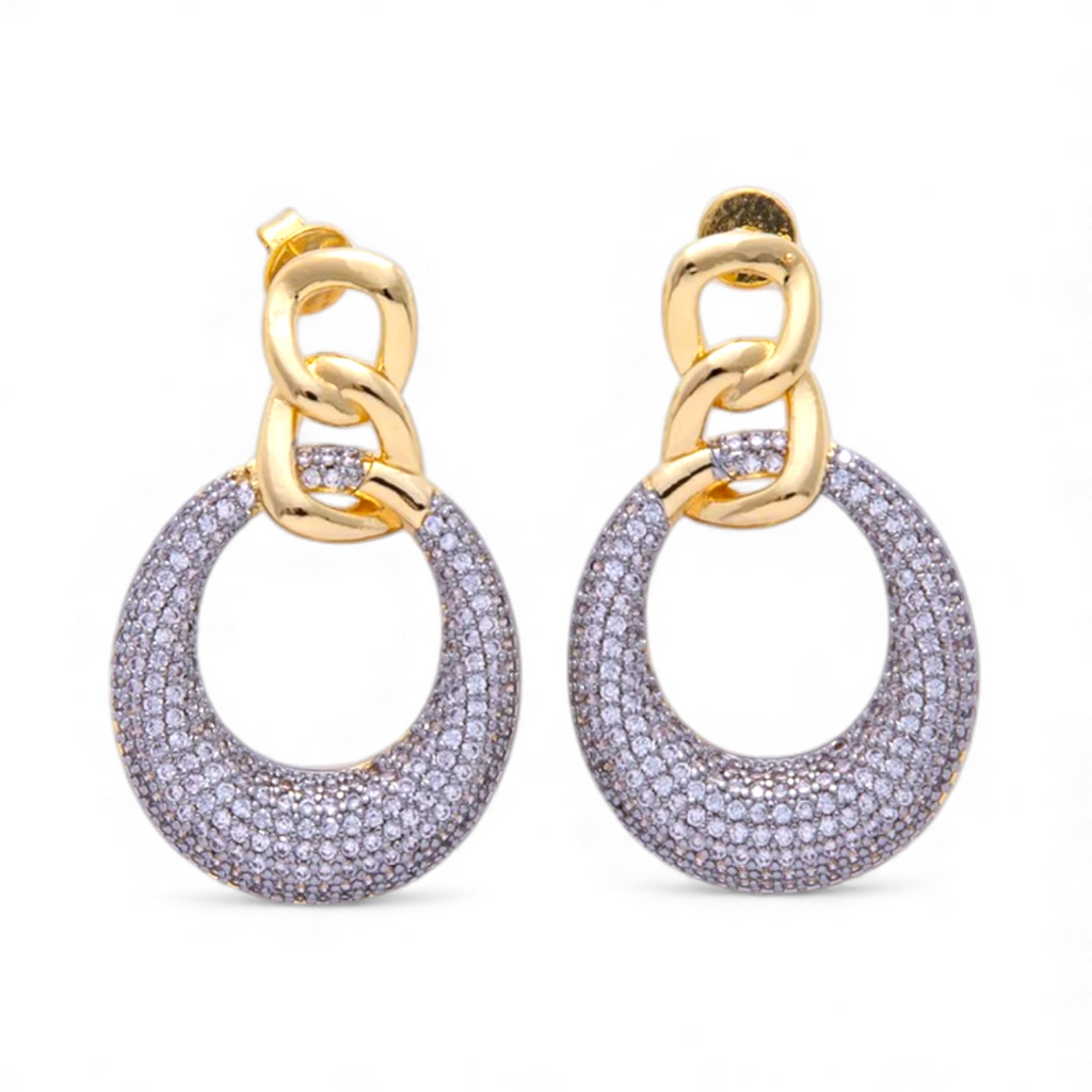 Mixed Metal Micro Paved CZ Round Curb Link Drop Stud Earrings ✦ EA-21A1340