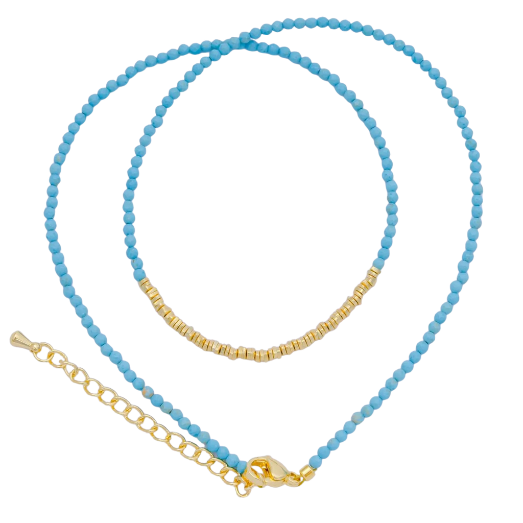 Turquoise Gemstone Bead Necklace 16.92 Inch with Extender NC-21WA3636