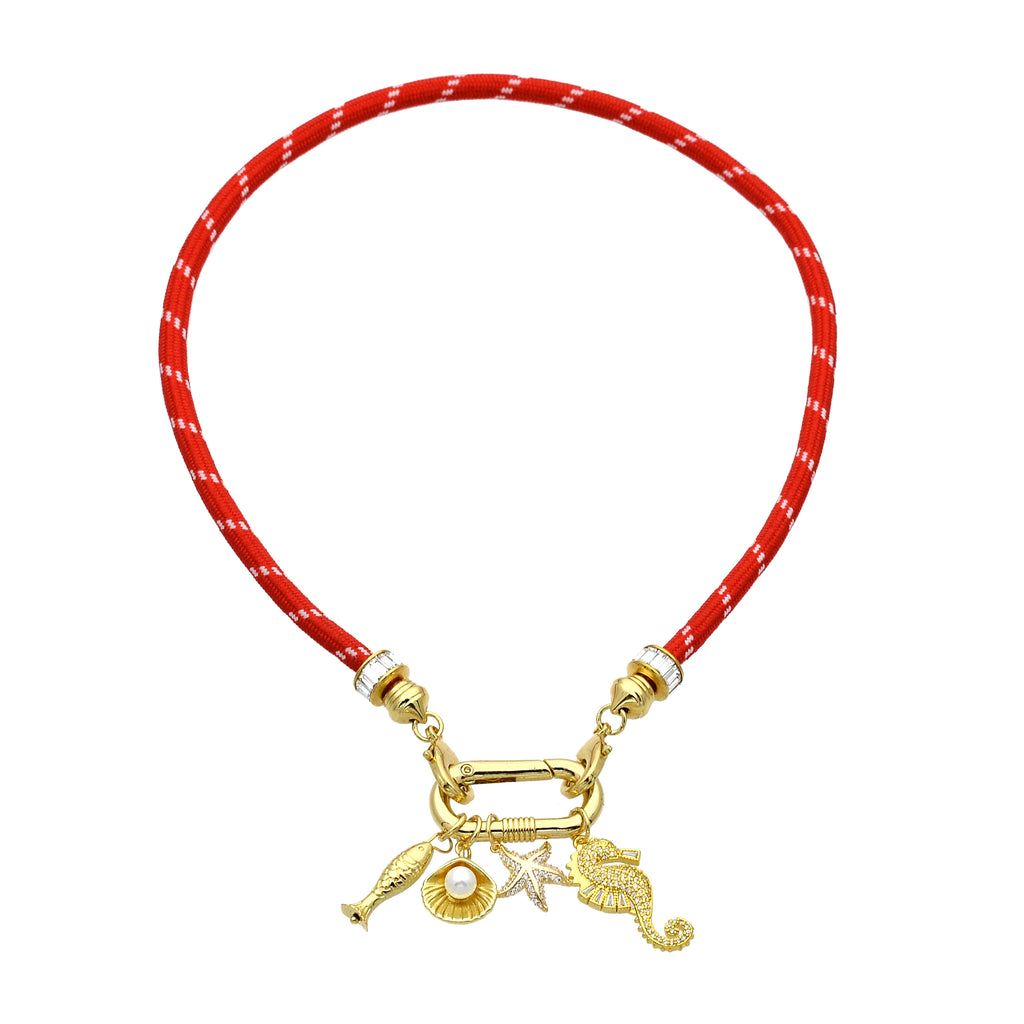 Red Cord Necklace with Beach Fish Charm Inspired ✦ NC-SJ0372