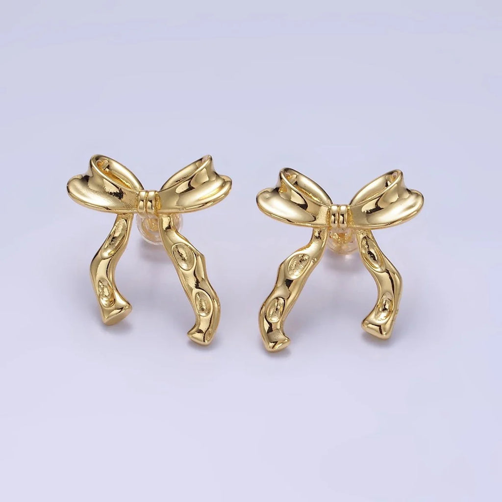 Rhodium Plated Hammered Ribbon Stud Earrings in Gold & Silver ✦ EA-21Q099 EA-21Q100 DISCONTINUED