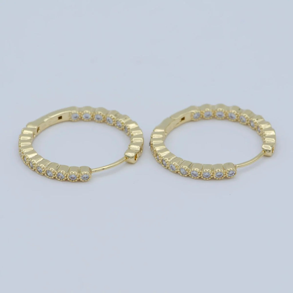 GOLD ROUND CZ DIAMOND CIRCLE HOOP EARRINGS EA-21AB1197