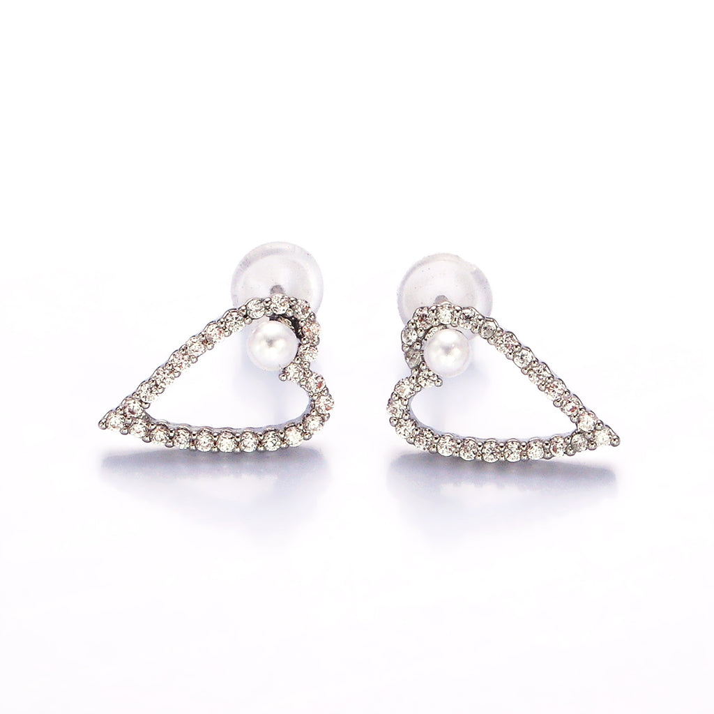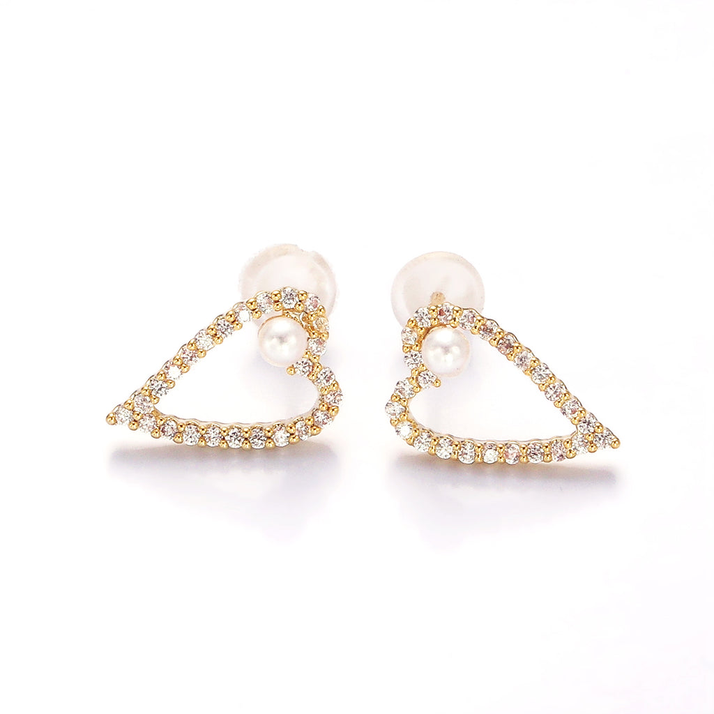 Shell Pearl Open Micro Paved CZ Heart Stud Earrings in Gold & Silver ✦ EA-21V516