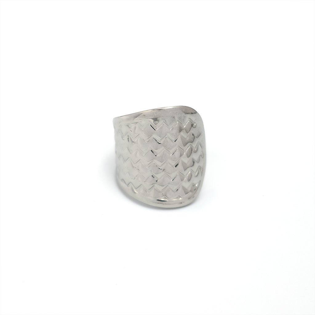 Silver Chunky Stainless Steel Geometric Adjustable Ring-00004