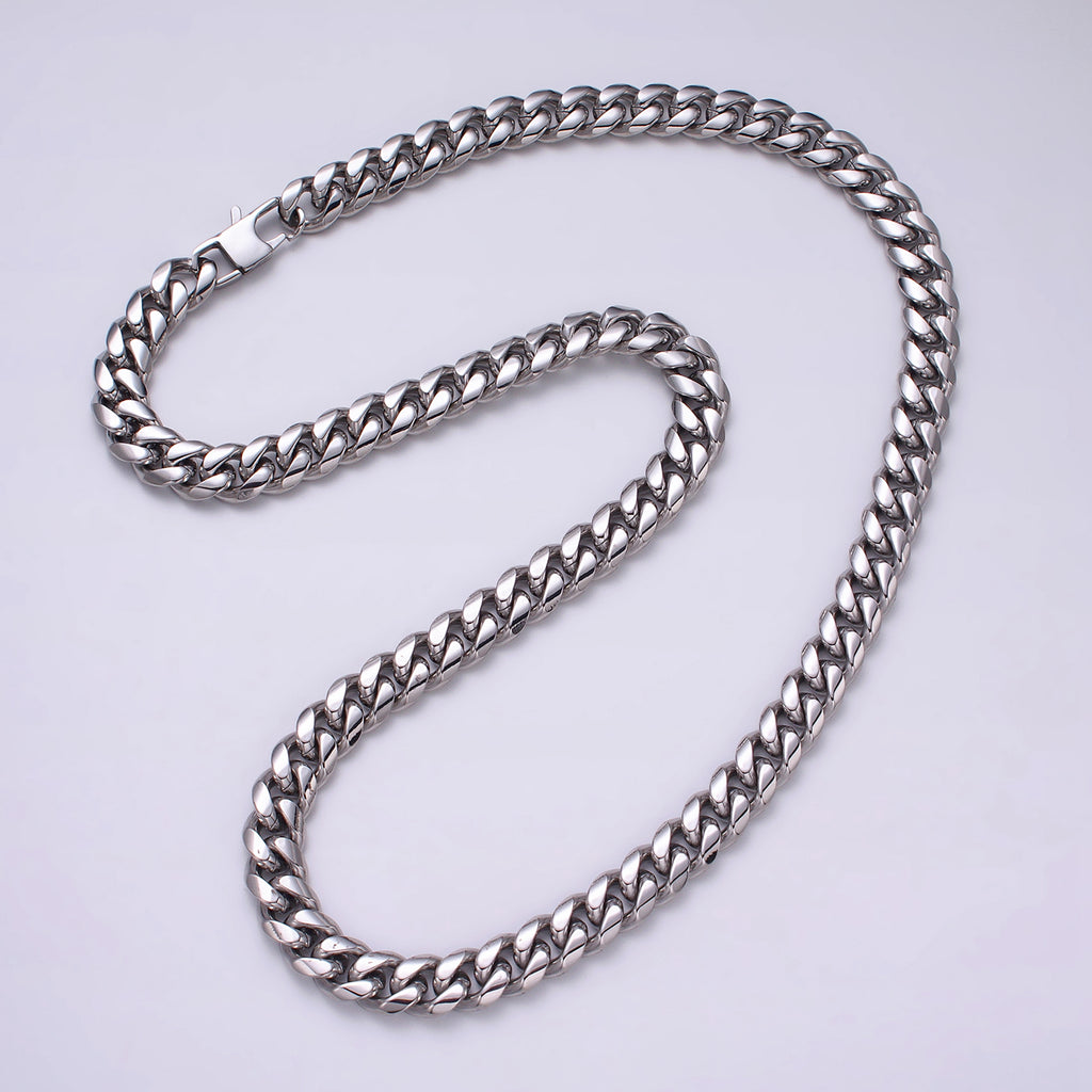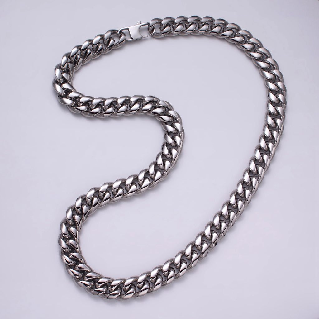 Silver Curb Chain Cuban Necklace for Men - Heavy Stainless Steel 10,12,14 mm Thickness 24.5 inch long