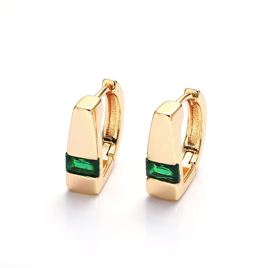 Silver, Gold Baguette Green CZ Geometric D-Shaped Huggie Earrings