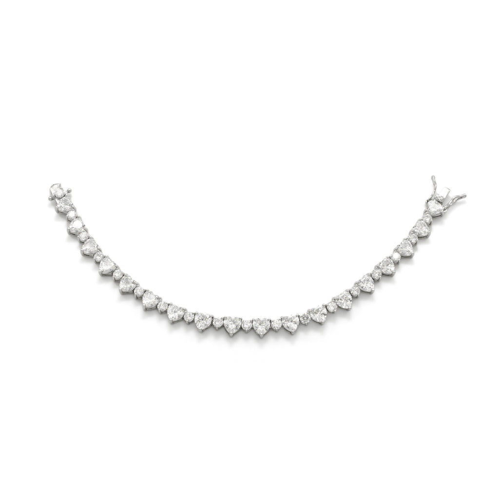 Silver Heart CZ Tennis Chain 7 Inch Bracelet ✦ CN-21WA2860