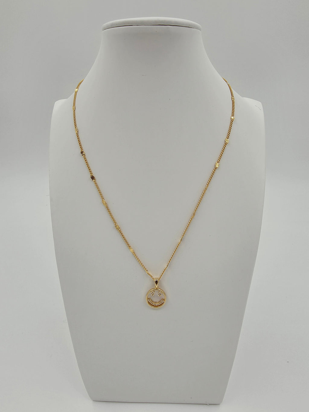 Smiley Face Danity Sunburst Curb Chain 18-Inch Necklace ✦ NC-SJ0498