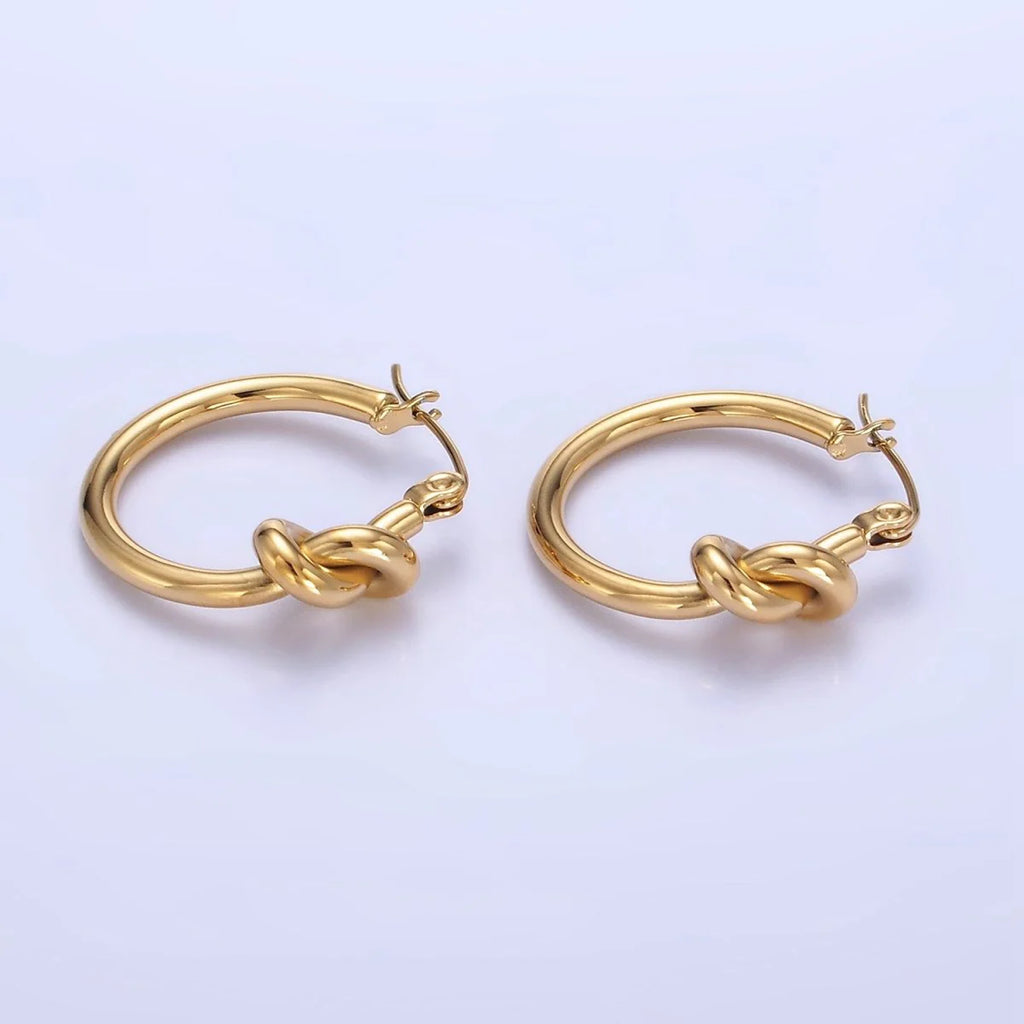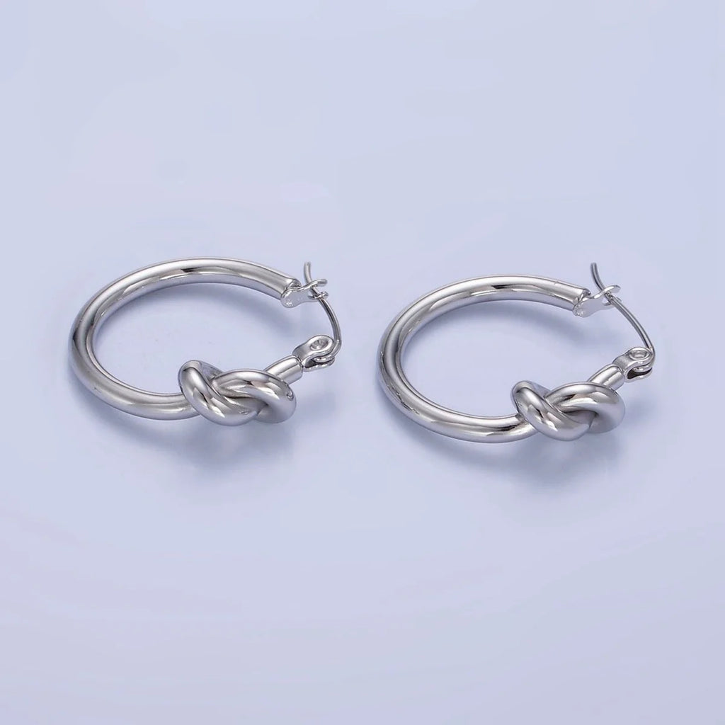 Stainless Steel Knot Latch Hoop Earrings EA-21P448 EA-21P449