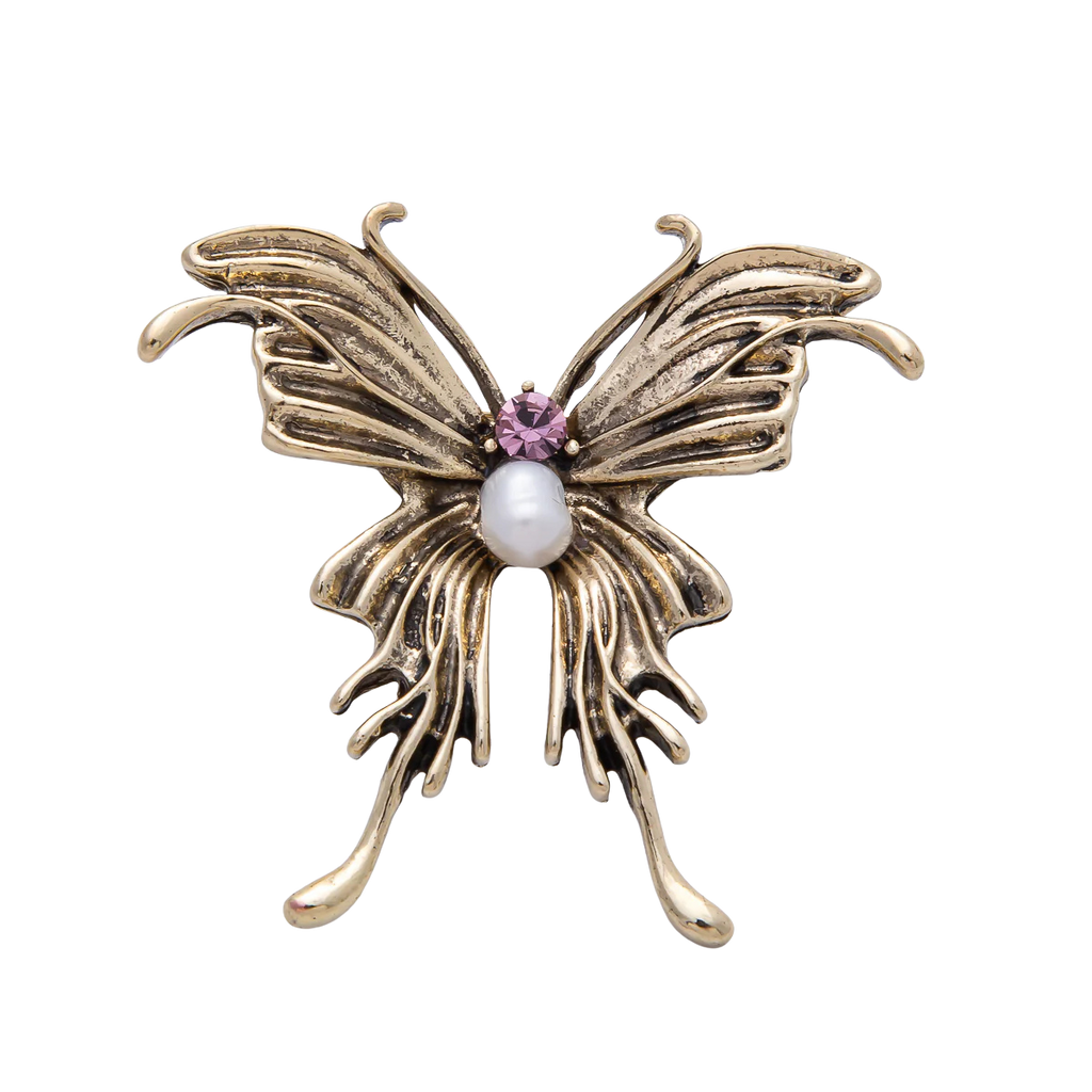 Vintage Antique Gold Butterfly Purple Stone Brooch Pin BH-21BH016