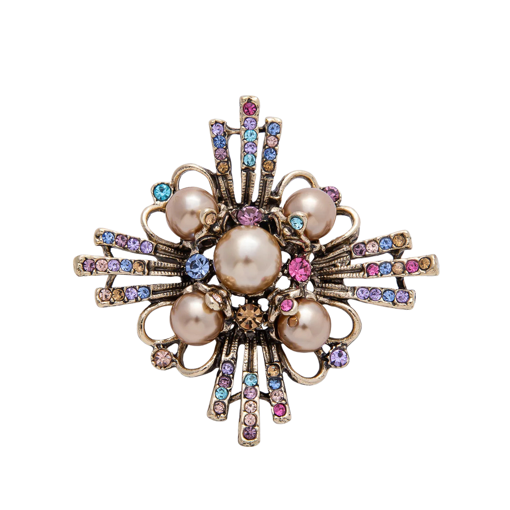 Vintage Gold Multi-Colored CZ Rhinestone Pearl Brooch Pin BH-21BH080